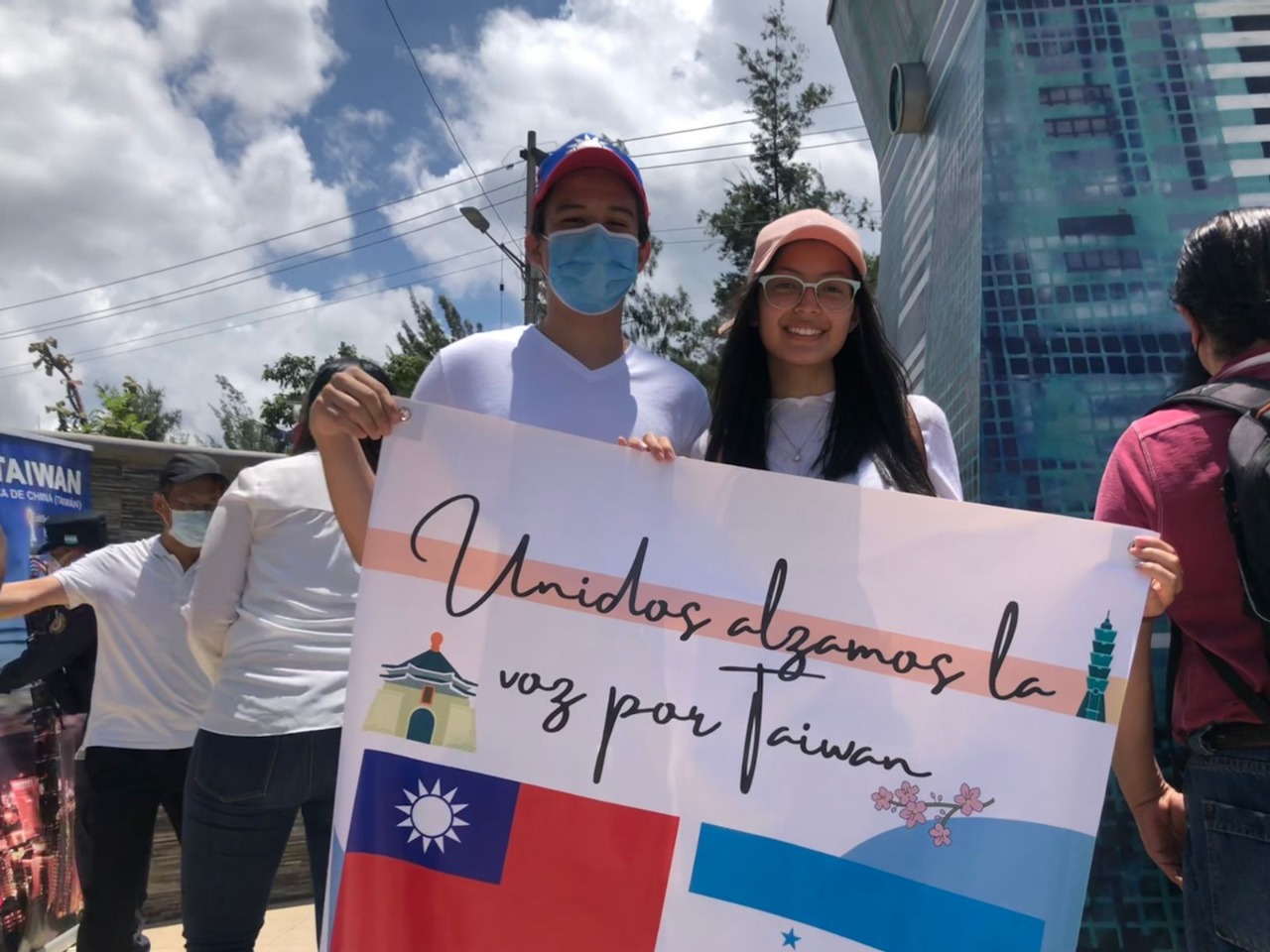 Puntualmente fueron llegando los jóvenes protagonistas, vestidos con camisas blancas que expresaban su mayor deseo “Paz para Taiwán y el mundo entero”. Junto a la réplica de la simbólica Torre 101, ubicada en la zona, se unieron sosteniendo pancartas donde se podían leer frases como “unidos alzamos nuestra voz por Taiwán” “Taiwán país de oportunidades, resiliencia y solidaridad” “el mundo vuela cuando todos escuchamos”, entre otros.
