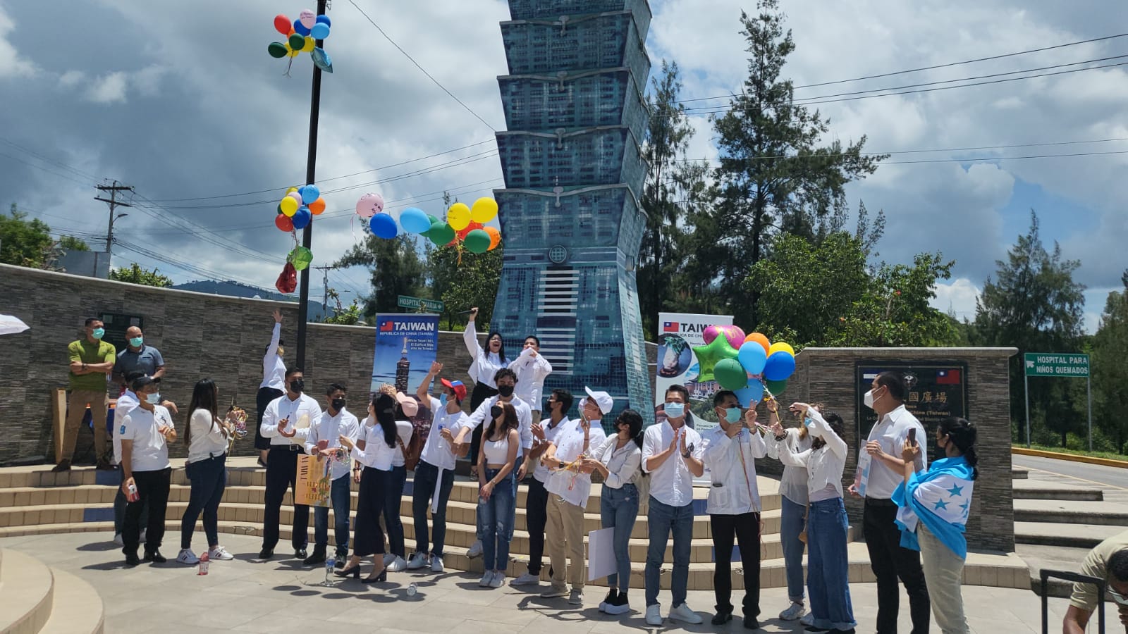 Con mucho entusiasmo y en un ambiente festivo lleno de alegría y de múltiples deseos por la paz, el bienestar, la solidaridad, la estabilidad democrática y la inclusión de Taiwán en las diversas organizaciones internacionales, los jóvenes becarios de ICDF y Taiwán MOFA de este año, reflejaron el cariño de los hondureños por Taiwán, protagonizando este día en la Plaza Taiwán un emotivo evento de lanzamiento de globos con escritos de buenos deseos, acompañados de la Embajadora Vivia Chang, funcionarios de la Embajada, padres de familia y amigos que se unieron a la jubilosa celebración.