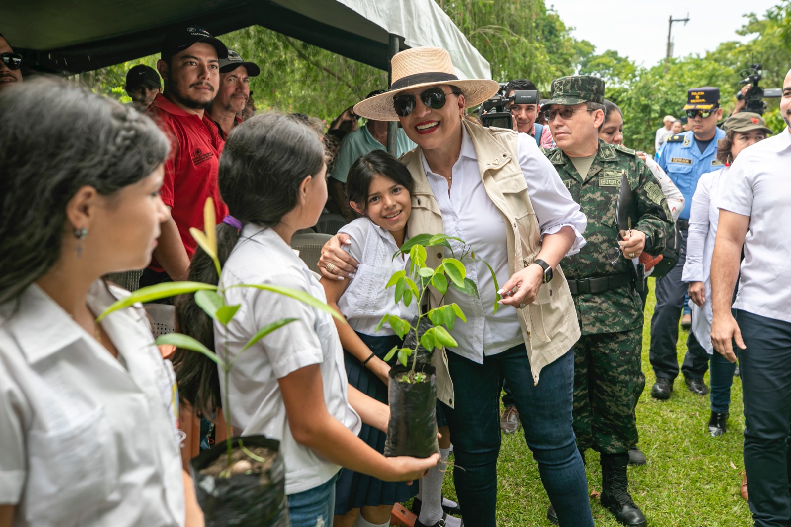 El evento se desarrolló en el Parque Arqueológico Los Naranjos, en la zona del Lago de Yojoa, y contó con la presencia, además, del secretario privado presidencial Héctor Manuel Zelaya y de los titulares de la Secretaría de Recursos Naturales y Ambiente, Lucky Medina y del Instituto de Conservación ForestalLuis Solis, respectivamente, entre otros.