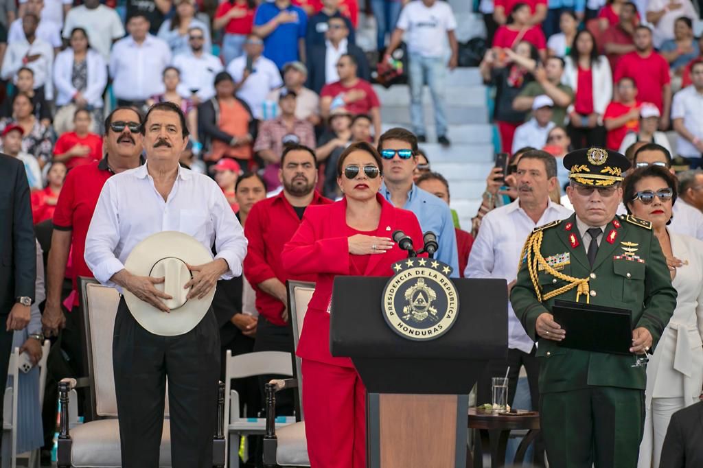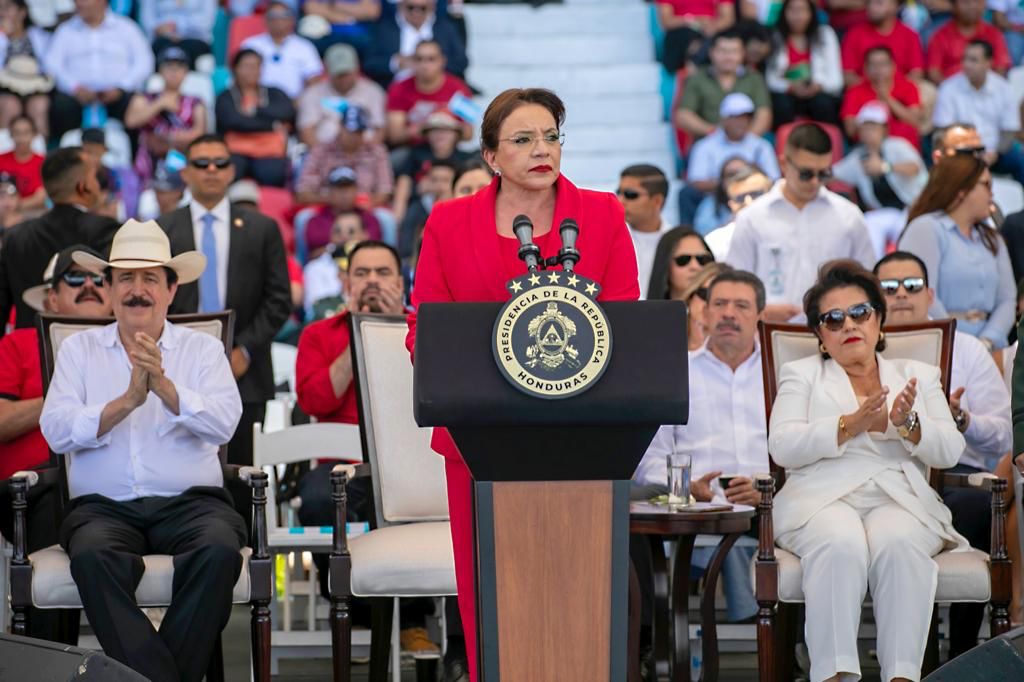 “Como comandante general de las Fuerzas Armadas, de la Policía y Presidenta de la República reafirmo en este acto mi vocación pacífica y democrática para que en Honduras nunca más vuelvan los golpes de Estado, para que nunca más vuelva la narcodictadura”, dijo la mandataria.