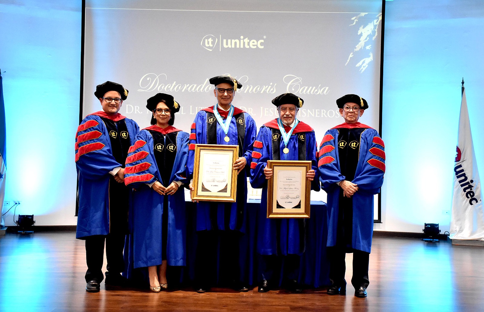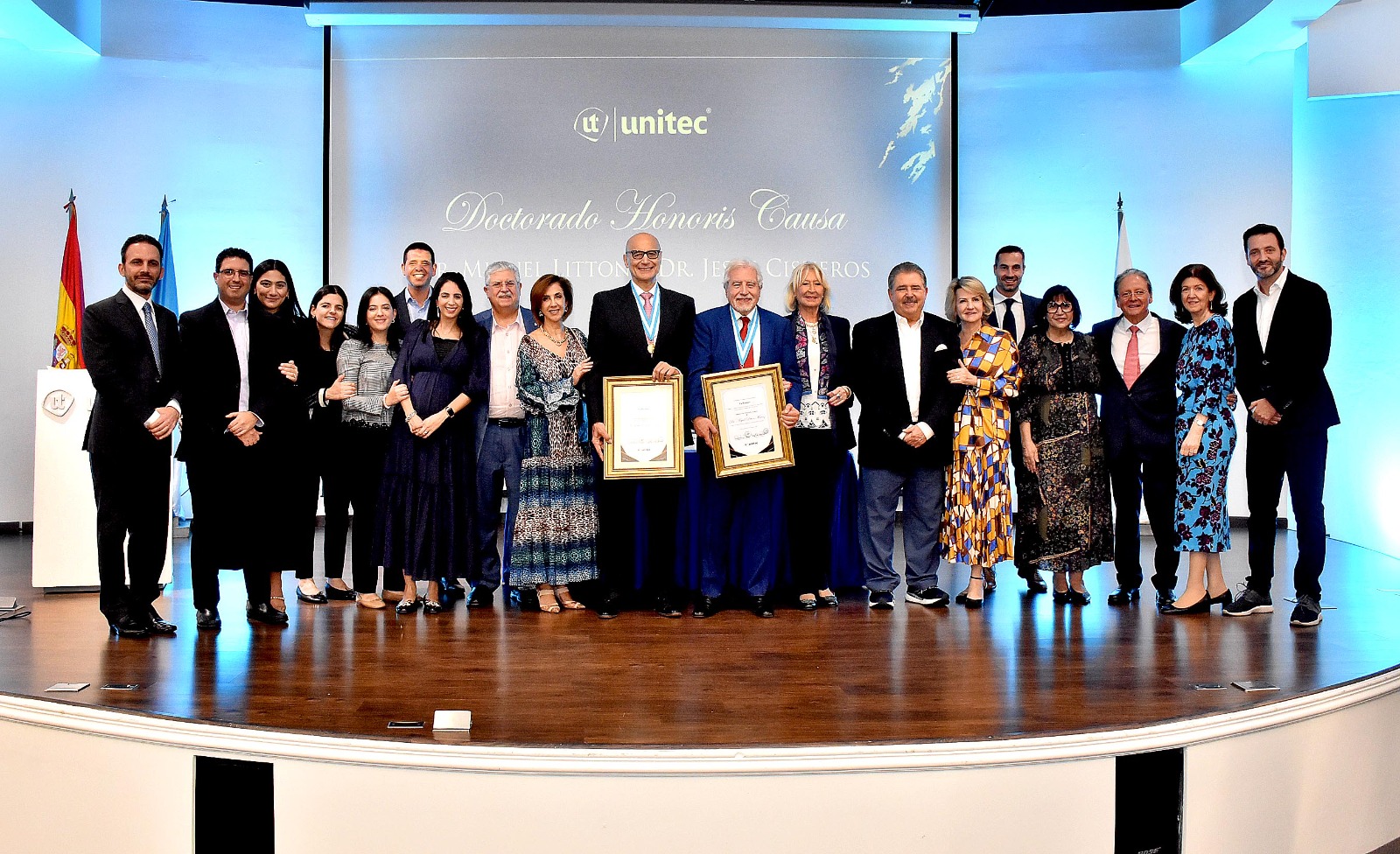 En reconocimiento a la extensa y pionera trayectoria profesional de los doctores Miguel Litton y Jesús Cisneros en el campo de la salud en Honduras, la Universidad Tecnológica Centroamericana (UNITEC) otorgó el título de Doctor Honoris Causa como tributo a su incansable dedicación y a los valiosos aportes realizados en el ámbito médico, especialmente en la atención de pacientes de escasos recursos del país.