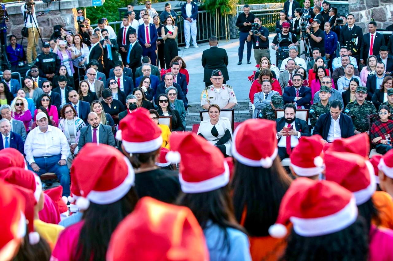 Esta música “viene de lo más preciado que tenemos en Honduras, de la voz de nuestros niños y de nuestras niñas que hoy traen a nosotros el sentimiento de la Navidad”, afirmó la presidenta.
