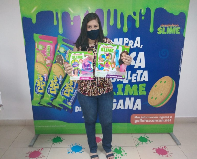Los niños tendrán la misión de buscar la galleta con relleno verde Slime y canjearla por 2 kits originales de Nickelodeon Slime. La galleta con crema verde se podrá encontrar en todas las variedades de Galletas Can Can, que son: Extra, Fresa, Vainilla y Chocolate, ahora en una nueva presentación de 6 galletas por cada paquetito.