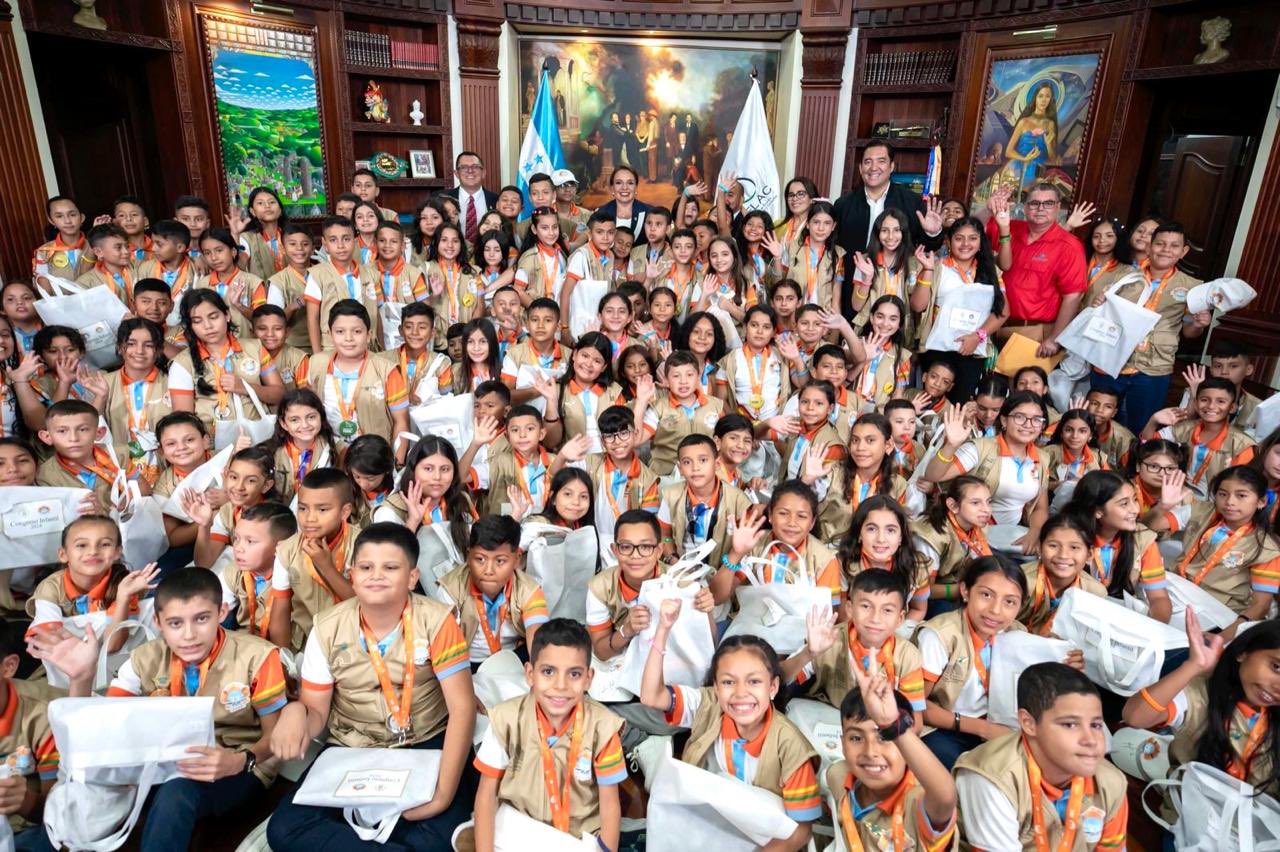 Los niños que conforman el “Congreso Nacional Infantil 2024” visitaron hoy a la presidenta Xiomara Castro que dedicó tiempo para escucharlos, saludarlos y abrazarlos individualmente.