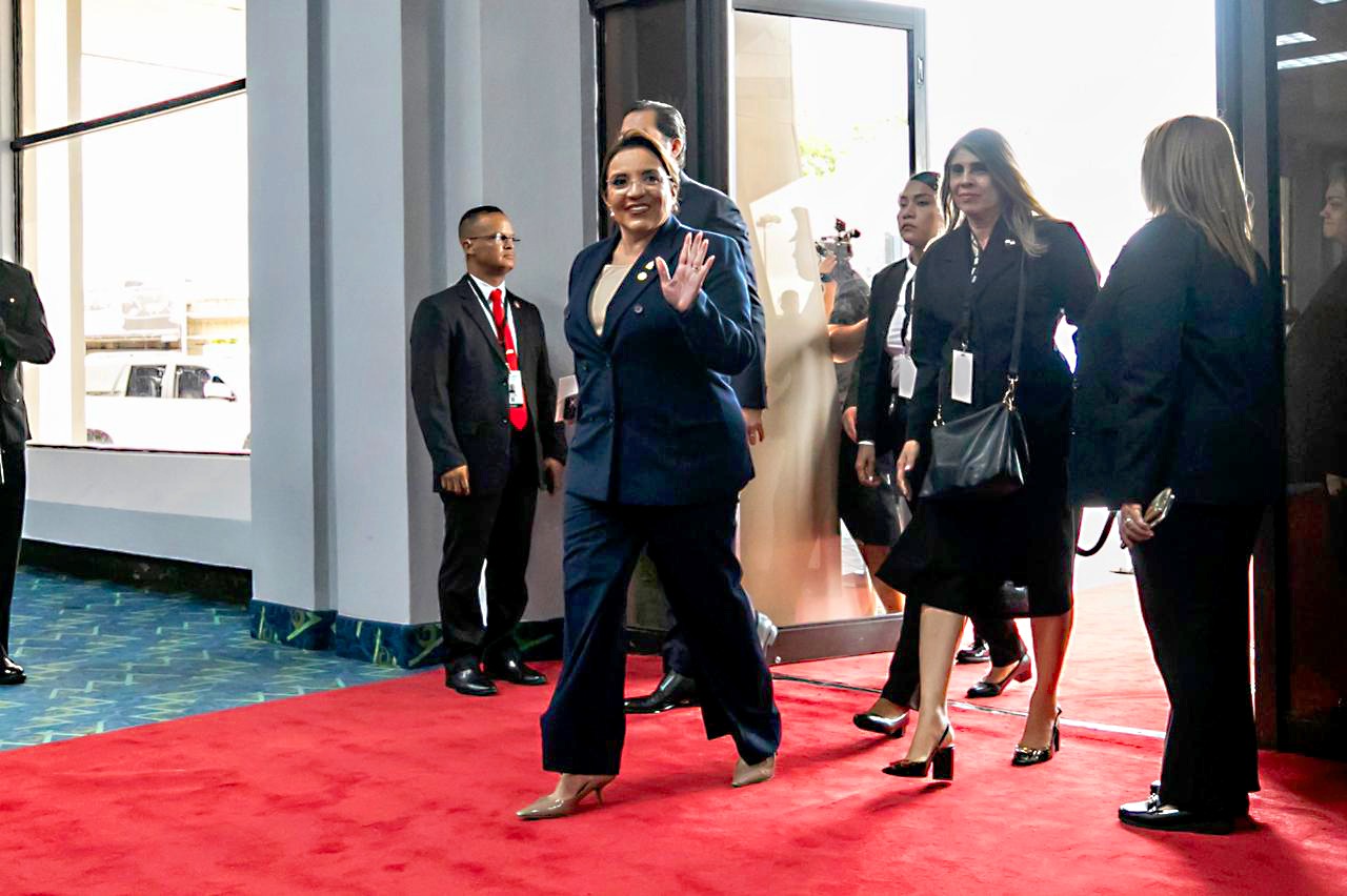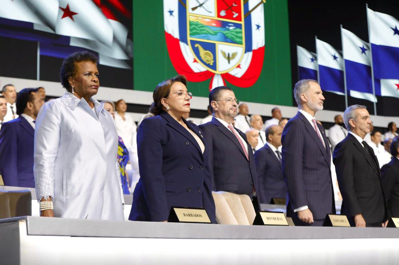 La presidenta Xiomara Castro participó hoy como invitada especial en la ceremonia de toma de posesión del nuevo presidente de Panamá José Raúl Mulino Quintero.
