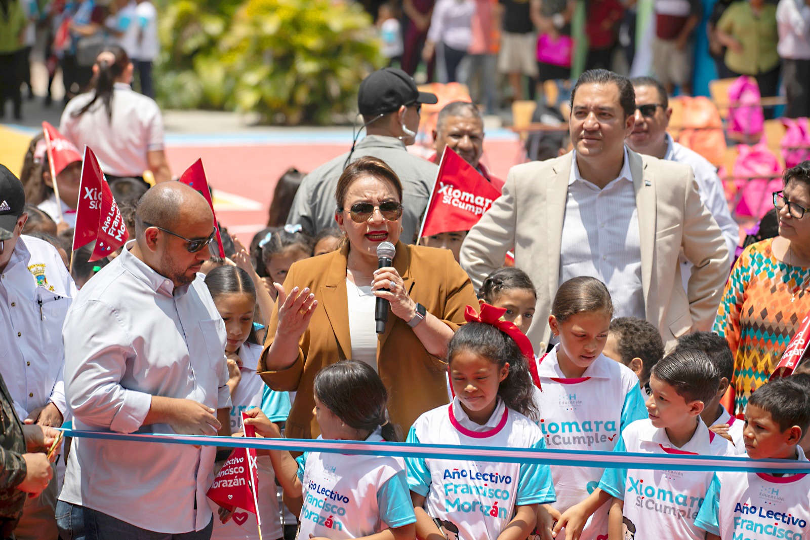 La presidenta Xiomara Castro inauguró hoy el Centro de Educación Básica “Álvaro Contreras”, en Cedros, Francisco Morazán, como parte de la meta de reconstruir unas 12 mil escuelas abandonadas y en el marco del Plan de Gobierno para la Refundación de la Patria.