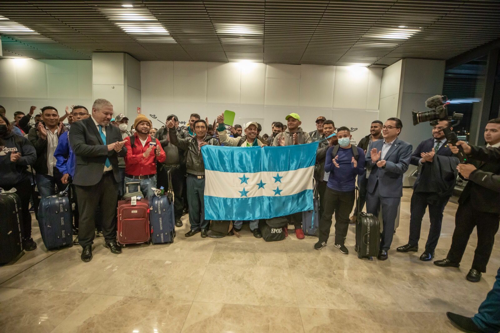 Con sus maletas a rastras y portando la Bandera Nacional, un total de 80 hondureños llegaron hoy a España donde trabajarán temporalmente en labores agrícolas como parte del Proyecto de Migración Circular.