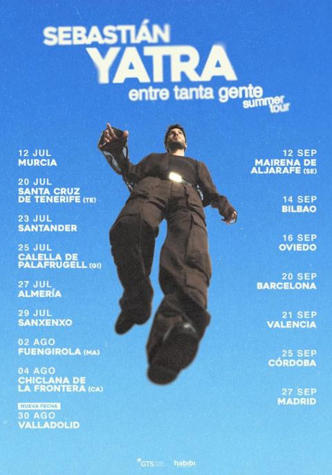 Tras el éxito de ‘Milagro,’ Yatra se prepara para su gira “Entre Tanta Gente Summer Tour” por España. La gira, que incluye 16 fechas, comienza el 12 de julio en Murcia y pasara por algunos de los festivales más importantes y recintos más emblemáticos del país. En una celebración de su duradero vínculo con el público español Yatra se sigue consolidando como una de las voces más influyentes del pop latino. Para más información, visita sebastianyatra.com.