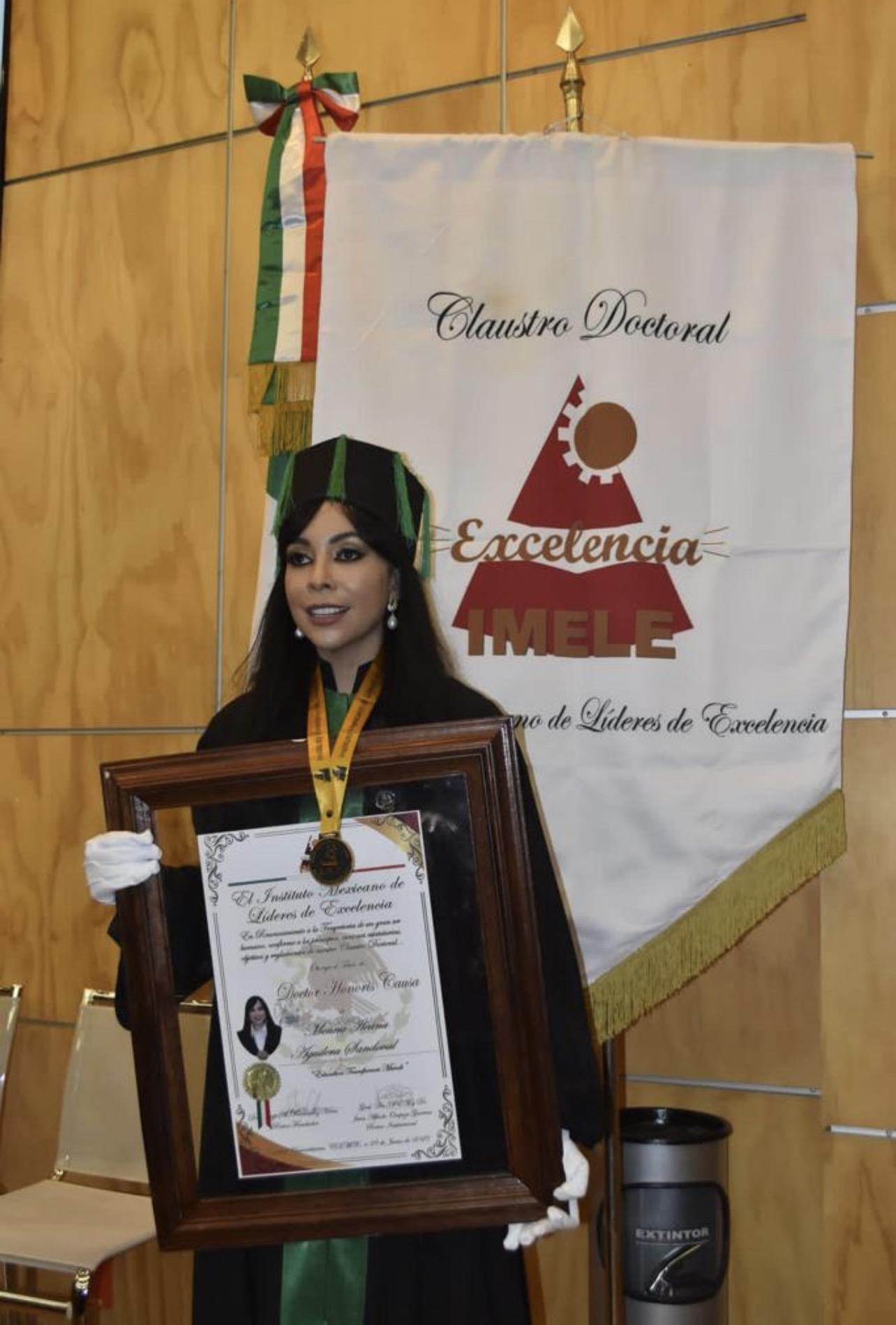 Aguilera también recibió el Doctor Honoris Causa del Instituto Mexicano de Líderes de Excelencia de México, en un solemne acto donde destacaron el trabajo de la doctora Aguilera como escritora, investigadora, conferencista, Master, doctorados y trayectoria profesional.