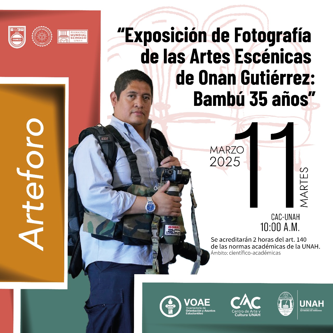 El pasado 11 de marzo, como parte del festival, se realizó una sesión en el Arteforo del Centro de Arte y Cultura de la UNAH (CAC). Este evento sirvió como espacio de reflexión sobre la importancia del registro visual en las artes escénicas.