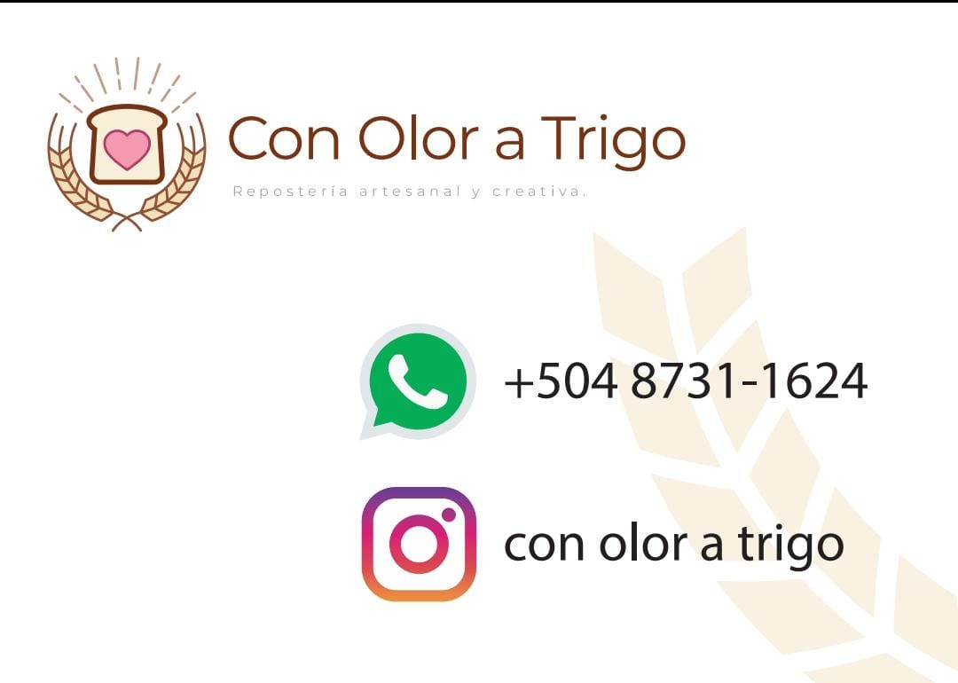 La repostería Con Olor a Trigo ofrece una variedad de opciones que van desde pasteles de fondant personalizados para cualquier ocasión, pie de limón de 9 pulgadas y mini pies, donas con azúcar glas, donas rellenas de: cajeta, manzana, freza, cereza, crema babaría o cheese cake. Además de galletas decoradas, cupcakes decorados y dulcitos de leche (brigadeiros) con ron de coco o chocolate.