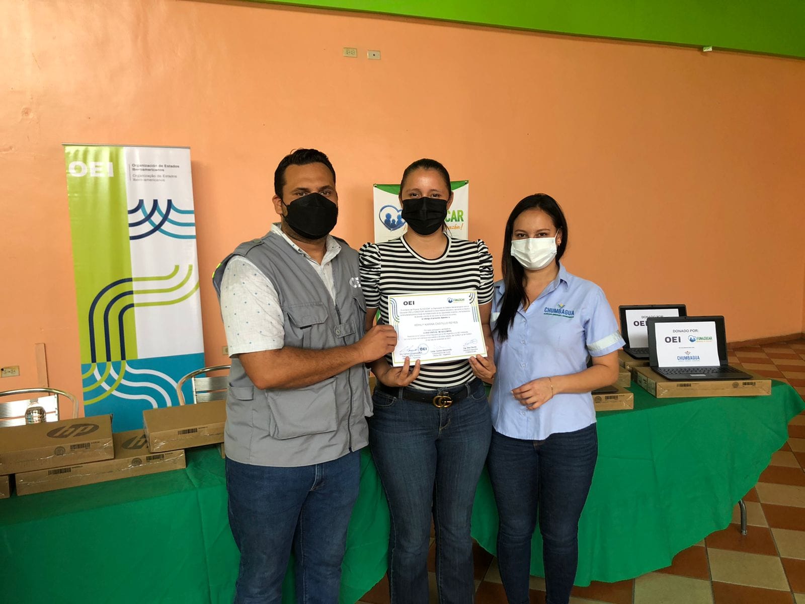 Este día junto a Compañía Azucarera Hondureña (CAHSA), Compañía Azucarera Chumbagua, Compañía Azucarera Yojoa, Funazucar y la OEI se realizó un evento de entrega de portátiles que serán distribuidas en la comunidad El Périco, Villanueva, Los Caraos en Cortés y San Antonio de Majada de Petoa, San Marcos en Santa Bárbara, Masicales en Macuelizo y Santa Elena en Naco Quimistán, y la comunidad de Cañaveral en San Francisco de Yojoa.