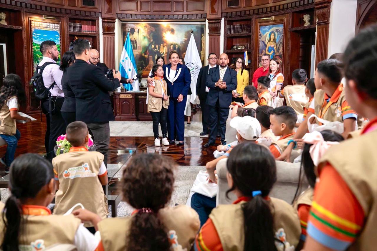 Los niños que conforman el “Congreso Nacional Infantil 2024” visitaron hoy a la presidenta Xiomara Castro que dedicó tiempo para escucharlos, saludarlos y abrazarlos individualmente.