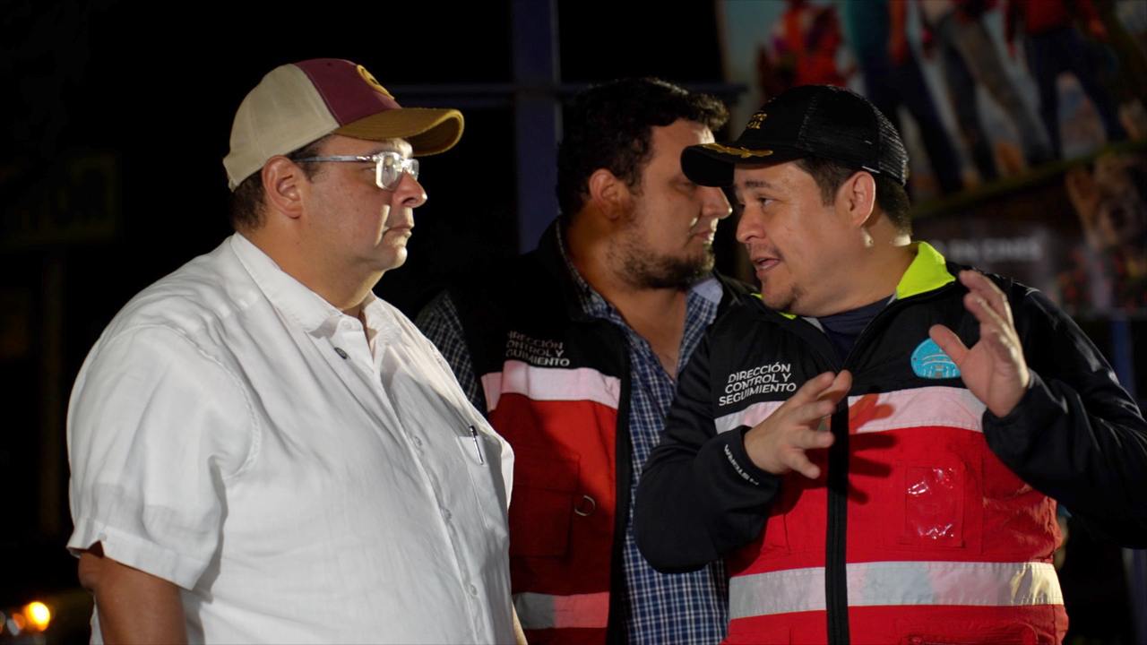 Aldana junto a su equipo de trabajo supervisaron anoche los trabajos iniciales de colocación de mezcla asfáltica para que luego se proceda a la rehabilitación total con estos dragones, que son financiadas con fondos municipales.