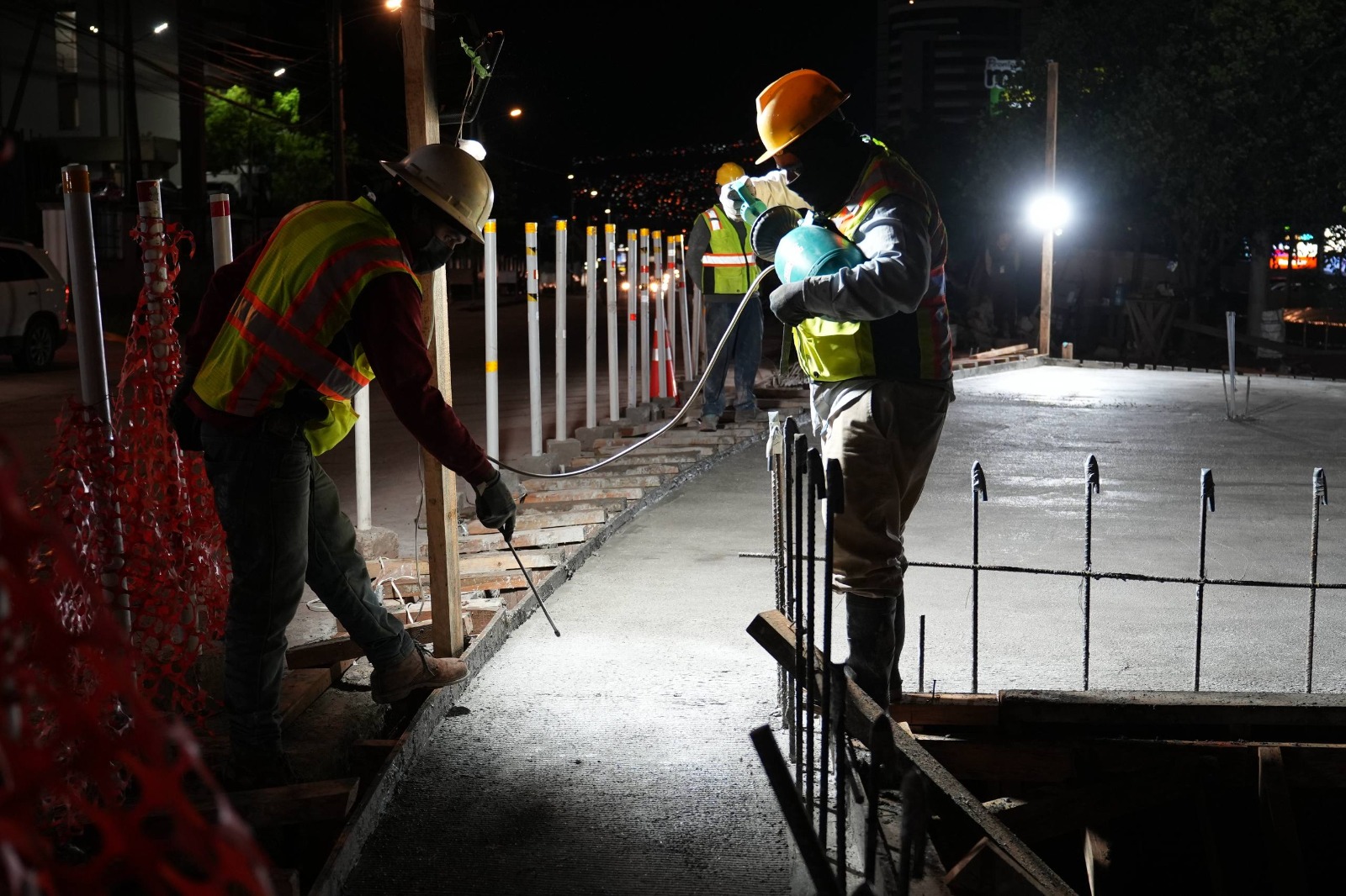 El alcalde Jorge Aldana acudió anoche a supervisar los trabajos de fundición de losas para esta obra de infraestructura vial.