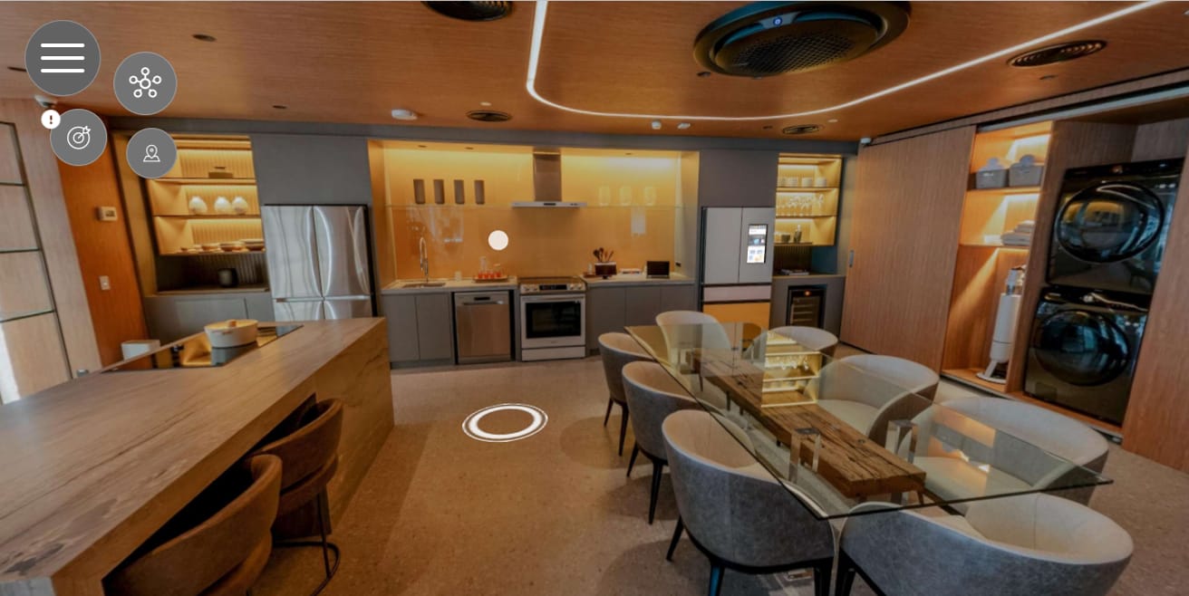 A partir del 1 de agosto cualquier persona podrá visitar el Hogar Inteligente de Samsung a través de un recorrido virtual completo en 360 grados. Hay nueve habitaciones, que incluyen la cocina, el comedor y la sala de televisión, los dormitorios, el espacio gamer, el jardín de fitness y mucho más, todas listas para una visita guiada por SAM, la influyente digital de la marca, que te presenta las diversas posibilidades de interacción y prueba de modelos, tamaños y colores de la cartera de Samsung.