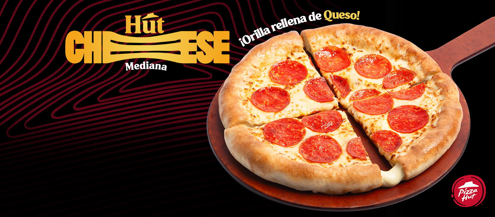Pizza Hut, cadena de restaurantes líder en el mercado de las pizzas a nivel mundial, presenta su NUEVA Hut Cheese Mediana con cada porción cargada abundante queso mozzarella a la orilla que harán una explosión de sabor en el paladar de cada uno de sus fieles consumidores.