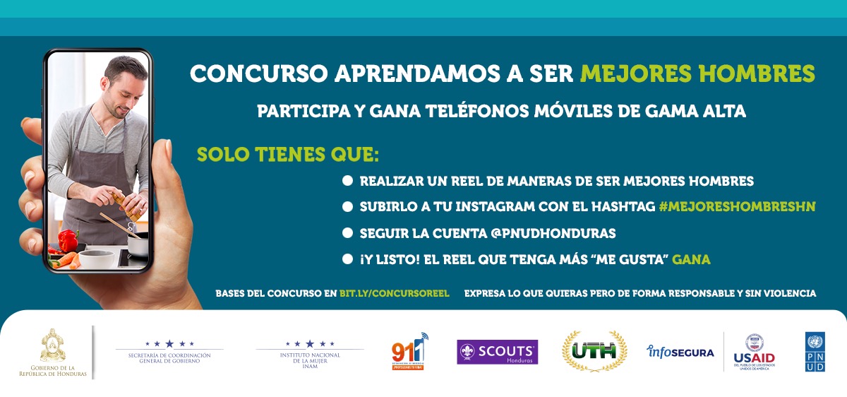 El PNUD en Honduras, USAID, el Sistema Nacional de Emergencia 911, la Secretaría General de Coordinación de Gobierno, el Instituto Nacional de la Mujer (INAM), la Universidad Tecnológica de Honduras (UTH) y los Scouts de Honduras, invitan a la juventud hondureña a participar en el concurso de reels en Instagram llamado “Aprendamos a ser mejores hombres”. Utilizando videos de 3 a 15 segundos como medio de expresión, los y las jóvenes sensibilizarán en el concepto de nuevas masculinidades para motivar a desaprender los conceptos mal orientados sobre los roles de género que conllevan a la violencia en la vida cotidiana.