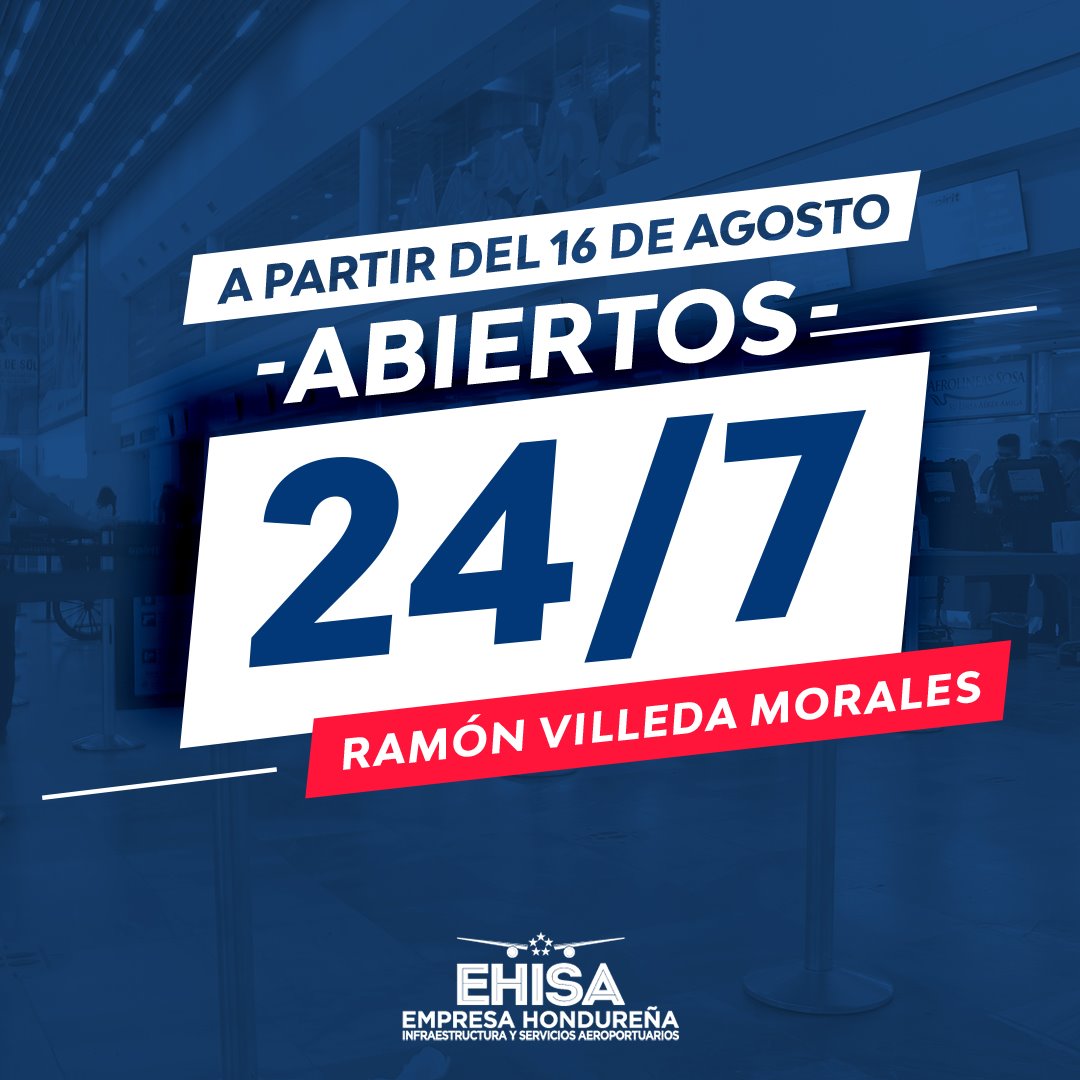 A todos los usuarios y público en general se les informa que a partir del lunes 16 de agosto del 2021 el horario de operación de la terminal aérea Ramón Villeda Morales será las 24 horas del ...