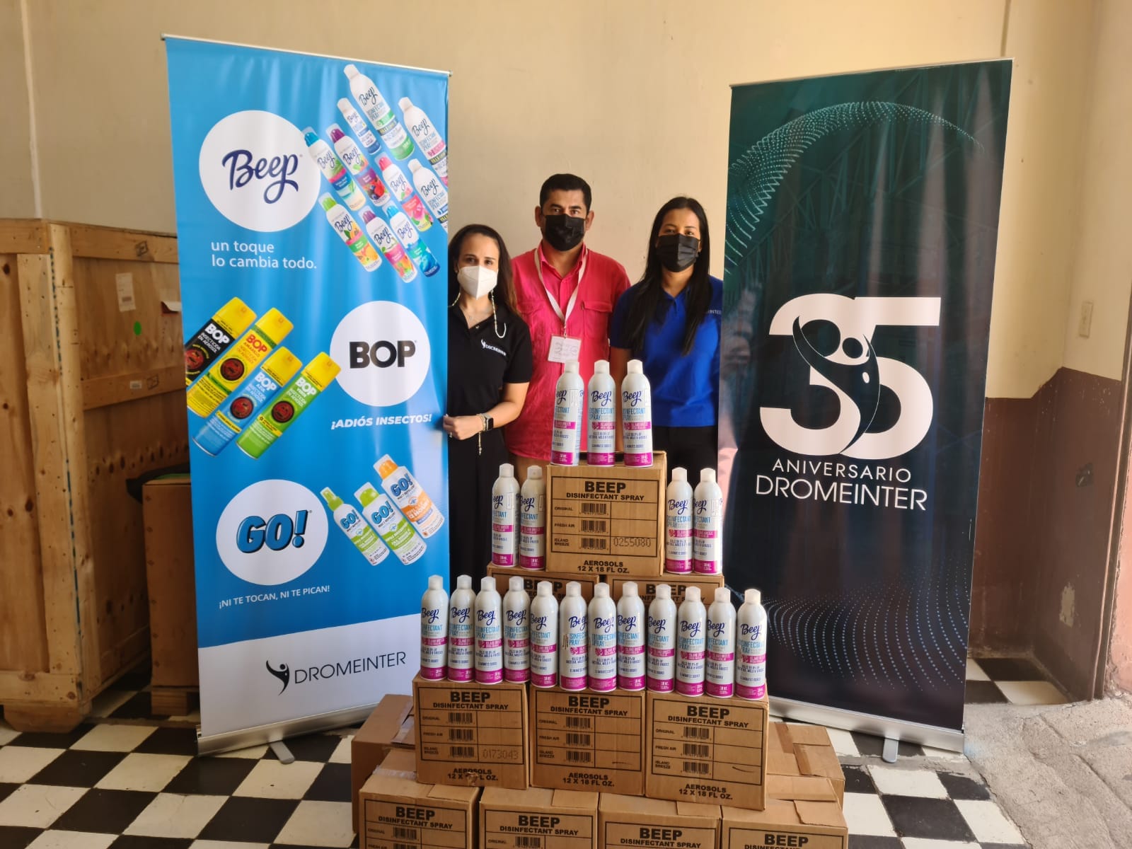 Los centros beneficiados fueron el Banco de Alimentos de Honduras, el Hospital María, el Centro de Cáncer Emma Romero de Callejas, el Hospital San Felipe, el Hospital del Tórax y Fundación FundaKupia. Cada una de estas instituciones recibieron 300 unidades de Beep Desinfectante en Aerosol, que elimina los malos olores y el 99.9% de bacterias, virus y mohos, causantes de enfermedades como la influenza humana (H1N1) y la Hepatitis A, entre otros. Este producto ha sido certificado, en un laboratorio que cumple con protocolos EPA de Estados Unidos, como un producto efectivo en la eliminación del SARS-CoV-2 causante de la COVID-19.