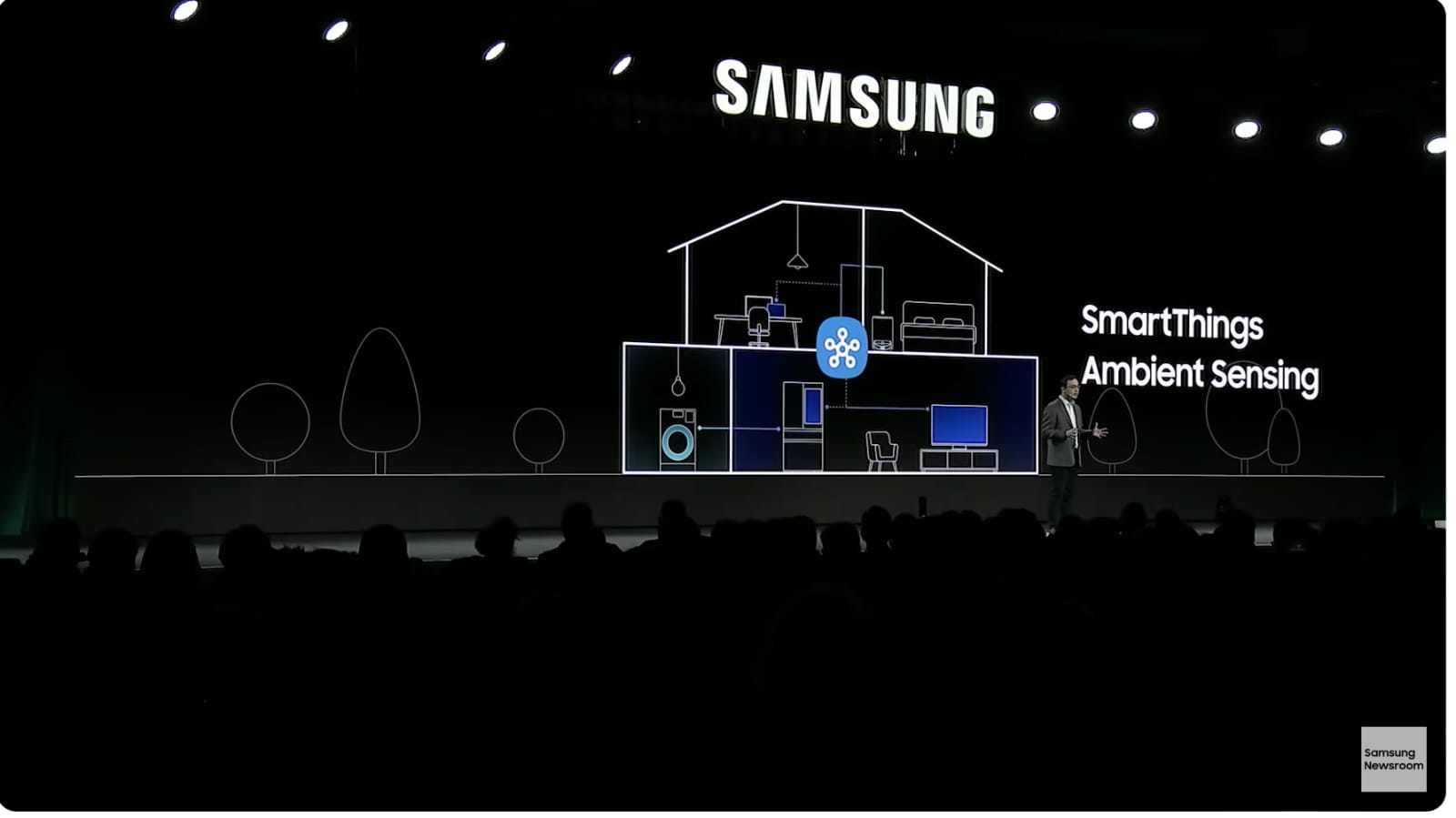 - SmartThings está siendo equipado con la última tecnología de inteligencia artificial para optimizar y personalizar la experiencia del hogar inteligente para proporcionar una comodidad total. SmartThings Ambient Sensingcomprende intuitivamente el entorno del usuario y el contexto situacional al analizar incluso los movimientos de las personas y los sonidos ambientales por medio de dispositivos conectados dentro de casa, lo que permite que dichos dispositivos respondan y se adapten de manera inteligente y fluida a las rutinas diarias.