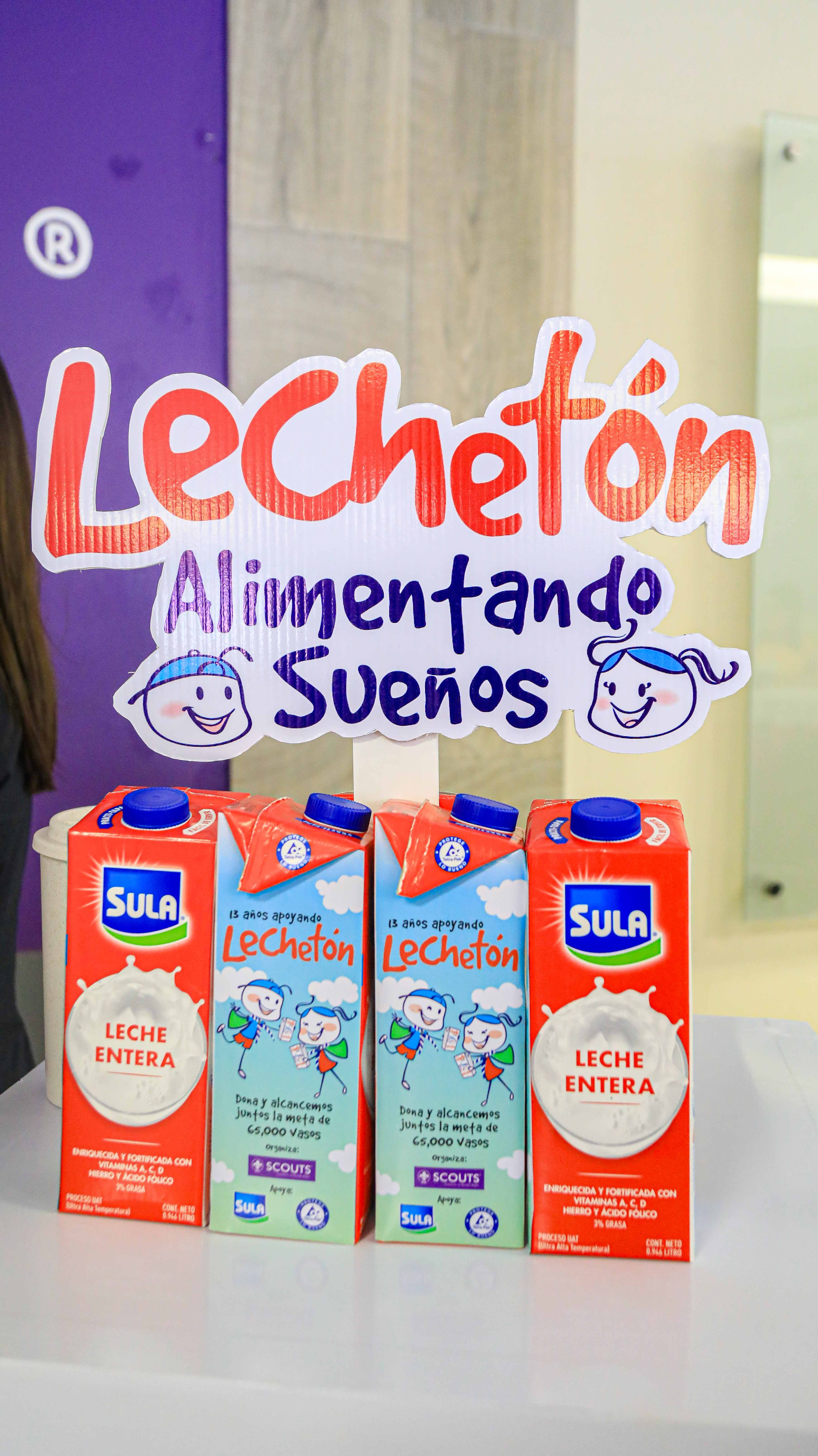 leche Sula en envases de Tetra Pak, con el slogan ¡ALIMENTANDO SUEÑOS!