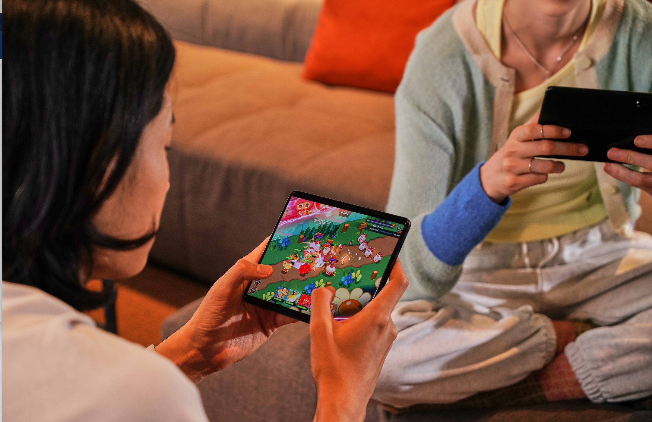 Este plegable, como ningún otro teléfono inteligente, te da esa posibilidad de poder jugar en una pantalla principal grande y, muy importante, sin distracciones. Al estar desplegado, el gamer puede seguir su partida de manera ininterrumpida, gracias a la nueva tecnología de cámara debajo de la pantalla. En cuanto a la calidad visual, posee un panel Dynamic AMOLED 2X que proporciona un nivel extraordinario y que se traduce en imágenes con un nivel elevado de brillo, con negros más profundos, y los colores saturados. Además, la frecuencia de actualización continua de 120Hz y el estéreo optimizado brindan una inmersión íntegra para el juego y también para ver videos o tener acceso a otro tipo de contenido.